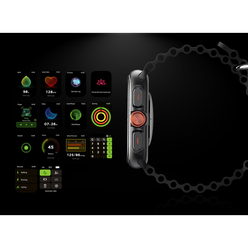 Descubre el reloj inteligente definitivo con una impresionante pantalla AMOLED ultra-retina de 2.01”, diseñado para quienes buscan lo mejor en conectividad, estilo y bienestar. Con más de 100 modos deportivos, llamadas Bluetooth, monitorización avanzada de salud y resistencia IP68, este smartwatch está preparado para acompañarte en cualquier momento del día.